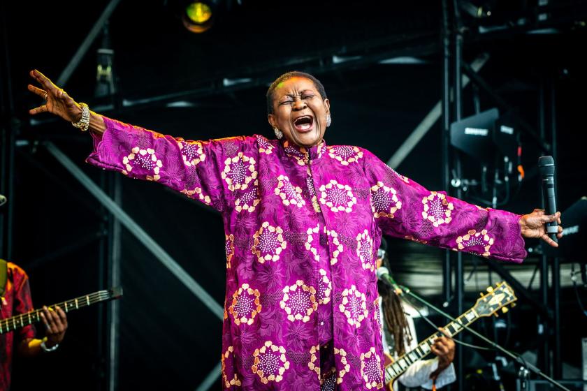 If there was one true star of the festival, it was the feminist activist and Queen of Calypso from Trinidad, the glorious Calypso Rose. Like many stars of WOMAD, the life story she has to get here is extraordinary and often painful, from being brutally raped as a teenager onwards. She finally had a big international hit three years ago with Far From Home, an album gorgeously produced by Belizean producer Ivan Duran and fellow radical Manu Chao. A survivor of more than one heart attack and cancer, when she took the stage her frailty was gone and totally won the audience over often with songs on weighty topics of oppression or domestic abuse, although her song advising women whose men have dumped them for a “floozie” that they should take up with a young boy in revenge was hilarious, and like all her material hugely catchy and well arranged. We could even forgive her going off-stage mid-set (she has to pace herself at 80) when her band did a not-so-exciting jam session. For her Calypso is an art where (and we did) “you should dance, but also listen.”