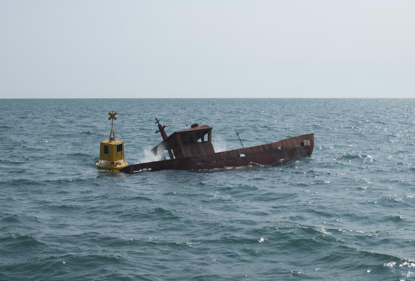 The drawings and videos, which are also available online for anyone to access, are his way of “reporting back from the extremities of the earth”. Why, though, should we take this self-styled explorer seriously when his absurdist projects are of no obvious benefit to humanity? First off, he makes his unrealistic dreams come true, when convincing others that a mission is worthwhile requires cast iron conviction. Gaining the necessary permissions to sink the boat, for example, took four years of unwavering commitment.