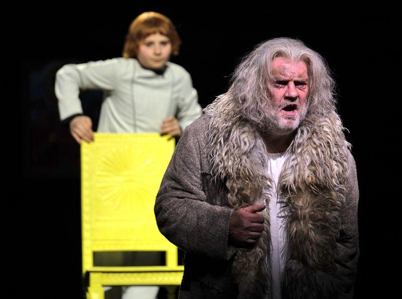 Adam Palka narrowly avoids making Pimen the usual human sleeping-tablet, though it's more about rich bass sound than characterisation. The other main bass, Alexander Roslavets, brings huge energy to the vagabond monk Varlaam, complemented by the rollicking orchestra in the song about the siege of Kazan, with genuine laughs coming from the wielding of the spoons by his co-rogue Missail (Alasdair Elliott). Two of the tenors are vocally a bit short of the ideal - Jamez McCorkle's disconcertingly wide vibrato takes a bit of getting used to (pictured below left with Palka), and the Holy Fool could do with more of the high-tenor strangeness than Mingjie Li can give the role - but John Daszak gives a rounded portrait of intriguer Shuisky. Andrii Kymach brings resonance to the decrees of Boyars' clerk Shchelkalov. It's good to have a boy as Boris's son, and Robert Berry-Roe, alternating with Zechariah King, touches the heart.