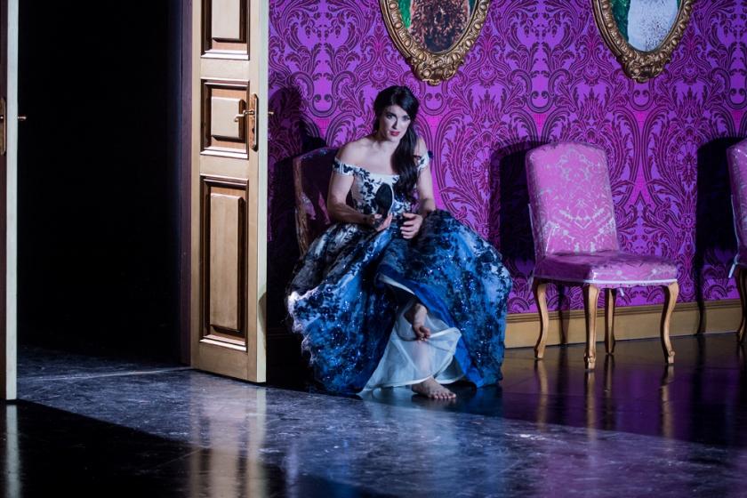 There are two casts for the principal roles in this opera (regular practice at the RNCM now) and I have seen only one of them. Those I heard included lovely coloratura singing from Daniella Sicari as La Fée (pictured above), with warmth and outstanding accuracy and attack, a winsome-sounding and delightfully characterised Cendrillon from Fiona Finsbury, and a very finely developing voice from Kamil Bień as Le Prince Charmant. The RNCM has decided to present this as a tenor role, whatever purists may think about faithfulness to the old French travestie tradition, and rightly. His singing in “Toi qui m’es apparue” and the succeeding duet was very good indeed.