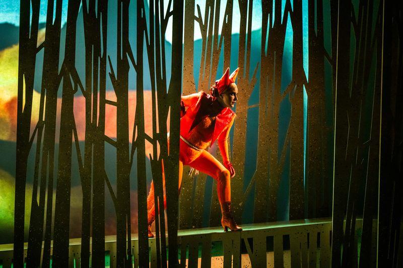 One of the gaps in Sophie Motley's hit-and-miss production is when Harašta takes aim at an overconfident vixen. In the libretto, he fails and only accidentally hits her, concealed in a cloud of feathers, with another shot. Here she's standing there for about a minute, crying out "shoot me", so he does. But then the pithiniess of Neil O'Driscoll's projection design kicks in, with more bloodsplatter. That's amusingly applied to the unlucky hens of the Forester's coop in Scene 2 - usually the Vixen's picking them off is unclear - and O'Driscoll does a splendid stream of piss when the Vixen sprays the Badger's lair to take it for her own. The silhouettes have the naive charm of Hans Christian Andersen's woodcuts, a contrast to the more Franz Marc-like tableaux; Sarah Jane Shiels' lighting also conjures the necessary seasons. It's also a joy to hear the text in pithy English translation - good craic, as Motley puts in - with a few lively tweaks applied to the words of Robert T. Jones and Yveta Synek Graff. And yes, the audience did laugh a lot.