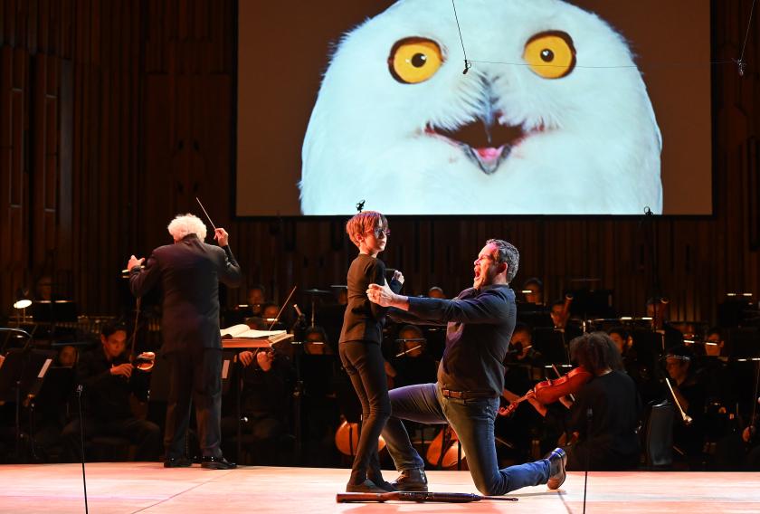 Sellars’s semi-staged production (originally mounted in Berlin in late 2017) features some fairly brutal and even farcical action on the raised platform around which the London Symphony Orchestra plays. Meanwhile, the videos on a giant screen behind (designed by Nick Hillel and Adam Smith, jointly known as Yeast Culture) spare us few details of nature – and humankind – red in tooth and claw. As well as sun-dappled glades, looming giant moons and rushing torrents, we see horrific woodland traps, slaughtered hares and even close-ups of human souvlaki-munching to symbolise the survival-instinct urges that plant deathly rivalry within these magic woods.