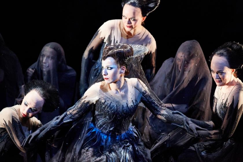 Georg Zeppenfeld as Sarastro in Royal Opera Magic FluteThat freedom only came in a looser second act, but it gave us two arias of pure perfection. Georg Zeppenfeld (pictured right in the centre), a peerless King Marke in Glyndebourne’s Tristan und Isolde, gave high priest Sarastro the perfect nobility of legato line and seamless range in his consolation of the beleaguered Pamina with “In diesen heil'gen Hallen”. And lyric soprano of the moment Christiane Karg caught all the light and the beauty of phrasing in the heroine’s aria of bewilderment at Tamino’s trial-inflicted silence in “Ach, ich fuhls”.