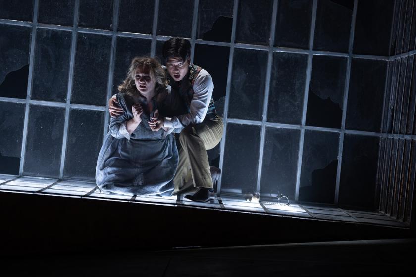Within all the business, not least of a vocally strong chorus not able to move around much and confined to production-line work when Gounod wants them to waltz or frolic (and the make-up generally is way over the top), there are some admirable gambits. Real sparks and smoke, shattering swords and wilting flowers, for a start, and the casting of an old Faust (Nick Dunning, excellent, looking like a grizzled Donald Sutherland) as well as the handsome young one he wants to become (Seoul-born tenor Duke Kim, yet another supreme, live-wire talent of the many in every musical field pouring out of South Korea, pictured above with Dunning). This isn’t just a convenient way of avoiding senile make-up on a youthful singer, but carries through to Old Faust’s reactions when his irresponsible rejuvenated form is about to overstep the mark, and a fine marionette-dance to Mephistopheles’ serenade. Not to mention the final idea, and I won’t specify it because that would be a spoiler.