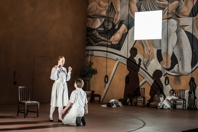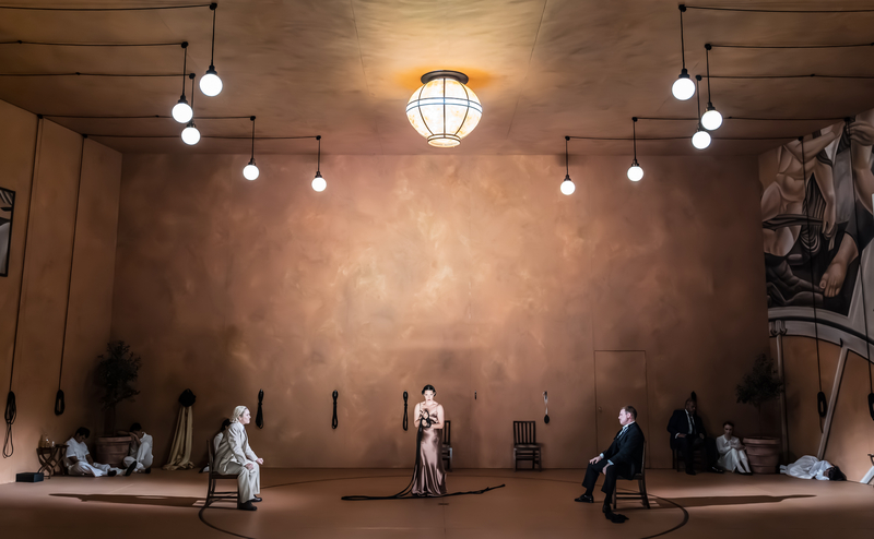 Designer Rosanna Vize reminds us of the size of the Linbury stage, using the full width and depth to create a quasi-Mediterranean courtyard, dominated by a mural with Fortune’s wheel in the foreground, and a series of ropes and pulleys. As human fates wax and wane, so a circle of suspended lights right and fall. It’s simple, visually effective stuff, and leaves plenty of space for the chorus of Guildhall Students – a white-clad troupe of accolytes – to busy themselves in making a drama whose every costume-change and illusion happens on stage in full view.David Bates’ La Nuova Musica are all zest and sway and surge in the pit – what a joy to hear a proper period band in this house – pacing the musical drama fast enough to motor over the thinner moments of plot while still lingering over the emotional meat of the action. There are some gorgeous musical moments: an Overture with a dazzling almost-oboe-concerto embedded in it; gorgeous duet “Mio ben Tesoro” for reunited Emperor and Empress; Giustino’s “Zeffiretto, che scorre nel prato” with its lilting pair of recorders; the pointillist birdsong of Leocasta’s “Augelletti garruletti”. Bates and his band sell not only those, but the more workaday moments between.
