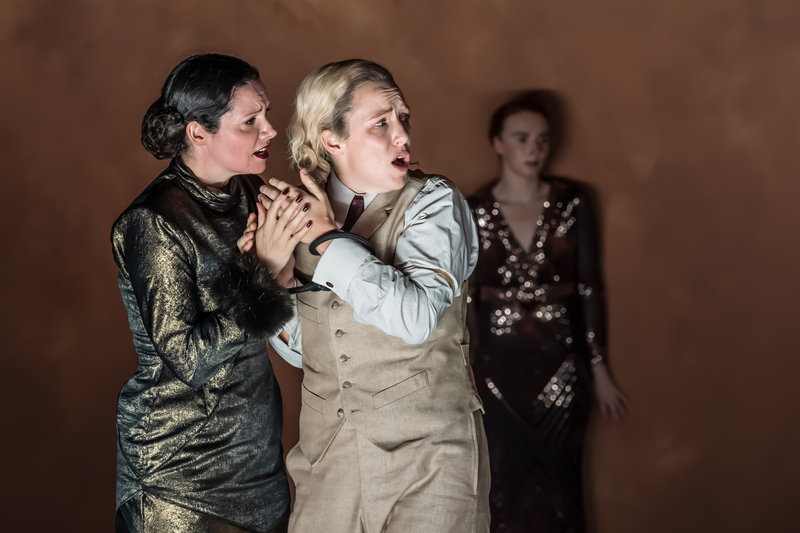 Casting reverses Handel’s original scheme: mezzos Polly Leech and Keri Fuge sing Giustino and Anastasio respectively (both written for castrato) while countertenor Jake Arditti is a snarling Amanzio (originally a contralto). There’s an embarrassment of lower-voice riches here, a full spectrum of altos starting from the oaky weight and smoothness of Leech’s voice – wonderfully true and sweet – and moving up through the austerely handsome depth of Esme Bronwen-Smith’s Leocasta (pictured above with Leech) and the greater scope and brilliance of Fuge – dazzling at the top – to arrive at Arditti’s Amanzio, silvery and nimble.Doubling as Arianna and La Fortuna, Canadian soprano Mireille Asselin (pictured above with Fuge) is rarely off the stage. Dispatching tidy coloratura in a variety of challenging frocks and situations she holds her own, but her piquant soprano can’t quite deliver the weight and expressive compass the role demands, out-gunned by Fuge’s more expansive delivery and physical comfort on stage. Having Ben Hulett (Vitaliano) and Jonathan Lemalu (henchman Polidarte) in supporting roles feels deeply luxurious, adding enough gravitas to root this charming melodrama in something real and human.