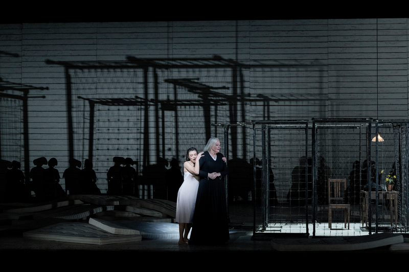 The smaller roles aren’t all strongly taken; veteran Hanna Schwarz has presence as Guth’s surprisingly haut-bourgeois Grandmother Buryjovka, but you still need a voice in good shape for the role, and Valentina Puskás’ Karolka, the Mayor’s daughter to whom Števaa has all too quickly turned in his embarrassment at Jenufa’s change of character, can’t always be heard (again, the set doesn’t help). There’s radiance, though, from Kirsty McLean, stepping in for an indisposed Isabela Díaz as shepherd girl Jana (changed from the original boy Jano) whom Jenůfa has taught to read: here’s a voice which does carry in the vasts of the open set.