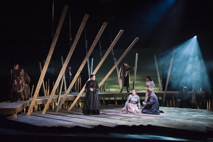 Everyone else in the piece is really part of the frame: agents of Katya’s destruction or helpless observers. Peter van Hulle’s Kudryash is a reassuring figure with his simple, scientific view of life; but he’s a mere child in the presence of these dark passions, unlit by electricity. Interestingly, the rational man knows folksongs and sings them sweetly: light love, true to Varvara (Jane Harrington’s) easy-going view of such matters. In the end, all they can do is run off “to a new, jolly life”, an exit worthy of Houdini.
