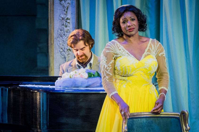 The lighter couple, caddish musician Prunier and maid Lisette (for which read Rosalinde's Adele from Die Fledermaus, a girl who also wants to go on the stage but here gets to fail at it), are decently taken by Stephen Aviss and Tereza Gevorgyan (pictured above with Llewellyn in Act Three). I'd have liked more light-tenor charm, though, from Aviss, who's perhaps too baritonal at times. But in Matteo Lippi we have the genuine Italian article for the cipherish Ruggero: affable of manner, all at one loudish dynamic level, perhaps, but the top notes are never in doubt.