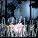 The costumes, designed by Fiona Hodges, look as though they’ve been plucked at random from a children’s playbox. Count Almaviva looks as if he’s just stepped out of the Arabian Nights, wearing a turban with a feather in it. Figaro looks Roman in toga and sandals. The leading women wear big frocks. And so on. The overall movement is awkward and ungainly, with the singers often being left standing in a line. And there’s a rather basic, half-hearted ensemble dance thrown in. It really is just a mish-mash.
