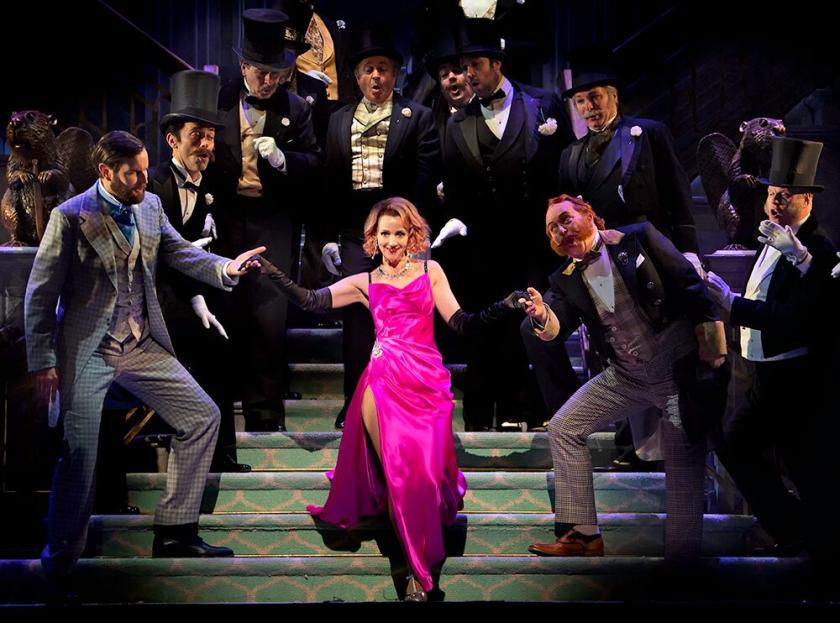 There are some good moments. Hanna’s first entrance, styled with more than a nod to Monroe’s “Diamonds Are a Girl’s Best Friend” from Gentlemen Prefer Blondes points up the plot’s neatly gender-reversed take on fortune-hunting, and relocating the men’s ensemble to a urinal (complete with, er, free-flowing choreography) makes a cheeky riposte to Calixto Bieito’s infamous ENO Un Ballo in Maschera. A Valencienne in thrall to therapy’s psycho-babble makes for some nice lines, but what a shame her tryst with Camille takes place in a broom-cupboard whose hinged door ensures a good third of the auditorium can’t see what’s going on inside. Far better is director Max Webster's canny substitution of Act II’s awkward gazebo for a pair of banquet tables whose quakes and trembles reveal the amorous couple concealed beneath.