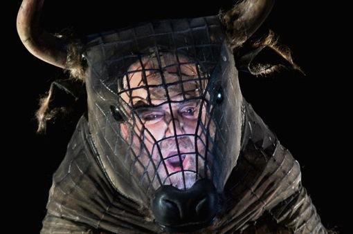 Flesh-tearing, woman-raping, body-goring brute he may be, but he's misunderstood, that Minotaur. It's a bold argument to make, but this is the contention of Harrison Birtwistle and David Harsent's 2008 opera. They are aided by a surprisingly cuddly performance from John Tomlinson. Head trapped in a prosthetic bull's cranium, hairy belly flopping out, a small stick-on penis standing to attention, Tomlinson is a reluctant and eloquent (if still pretty hideous) half-man, half-beast, soliloquising soulfully on his existential crisis (that of being treated as all-beast when he sees himself as mostly man).