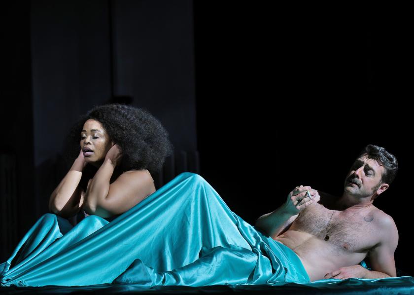 Yende teams up well with Niamh O’Sullivan when sister Ino visits (pictured above by Bill Knight); it’s a pity we don’t get to hear the Irish mezzo’s lustrous tones more sustainedly than in just “But hark! The heavenly sphere turned round”. Ino’s mortal suitor Athamas is even more cipherish, and even Mears’s bleakness in the post-burning epilogue can’t quite justify his belated flash when we haven’t seen him for an act, though Carlo Vistoli gives the last aria plenty of energy. The first act can be slow to kindle, but Mears tells the story of a maid tending the grate who catches Jupiter’s eye well before and during the Overture. Brindley Sherratt can’t make much of Major Domo Cadmus, but he shines as Somnus, the god of sleep slowly roused by Juno and assistant Iris to further the jealous wife’s plot against Semele.
