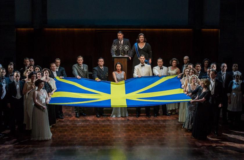 Daughter of the great Gustavus Adolphus, legend of the 30 Years’ War, Cristina (the stupendous Australian-born Helena Dix), having ruled since childhood, faces the Elizabeth I dilemma – whether to marry her Leicester- or Essex-like favourite, de la Gardie (the rather splendid tenor John Bellemer) or remain a virgin queen and outface a growing uprising.