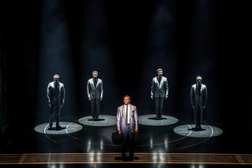 Not that the songs are trusted much more, most choked off after a chorus or a hook, like those irritating car journeys when you don’t have control of your playlist and someone else is skipping through it. It’s here that Des McAnuff’s direction makes some curious choices. For a Broadway show brought over to a big West End venue, there’s a disappointing paucity of big production numbers. The five lads are the focus of course, but apart from a brief studio session with The Supremes (Paul Tazewell’s bias cut dresses are fab), they’re marooned on a giant stage with no set, no backing singers nor dancers and only a change of jackets to differentiate one number from another. When the band are revealed for the finale, they look great, sound great (Kenny Seymour does a good job) and, at long last, we don’t feel that we’re staring into a cave.