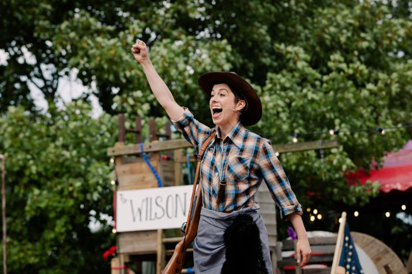 Wisely, the venue opens with an established favourite, a Broadway warhorse, the toe-tapping crowdpleaser that lends itself to the sky as a roof and the trees as a backdrop. Once you excise the racism from its 1946 original version, give Annie a little more agency and walk the tightrope of caricature with Chief Sitting Bull, you can’t really miss with Annie Get Your Gun and director, Simon Hardwick, doesn’t.
