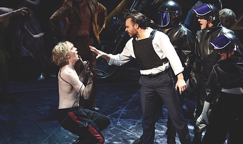 Tasked with putting the stratospheric icing on Steinman’s bombastic musical cake is all-American Andrew Polec, who plays Strat, leader of The Lost. Slender and blond-haired, he barely looks capable of shouldering his heavy load, but as the show bounces from peak to peak, he proves himself equal to every challenge, hitting the big sustained top notes as if daring them to be longer and higher, and even essaying a spot of Roger Daltrey-style microphone-twirling. His show-opening soliloquy about blazing Fender guitars is a bit peculiar, but he starts to cut loose in “It Just Won’t Quit”, a yearning duet with Raven (hint: they’re predestined for each other), and when he leads the huge ensemble eruption of “Bat Out of Hell” that closes the first half, the show’s mixture of fantasy, sci-fi and crazed ambition clicks into sharp focus.