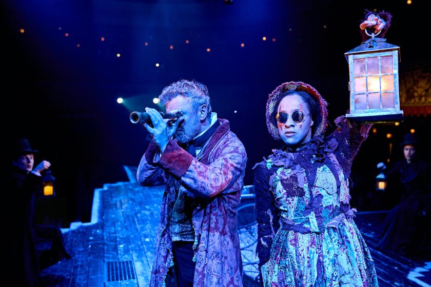 The short answer is that they love it. Populism rules. Beginning with a pre-show in which actors dressed as Victorian street sellers offer mince pies and tangerines to the spectators, while on stage a large cast of supernumeraries brim over with festive spirit before a single handbell is rung, or a single word spoken. When the story begins, the words at first are familiar quotations from the 1843 original, and a lot depends on everyone knowing, as they probably do, the outline of this archetypal tale of greed and redemption, which has been adapted time and time again since its first publication.
