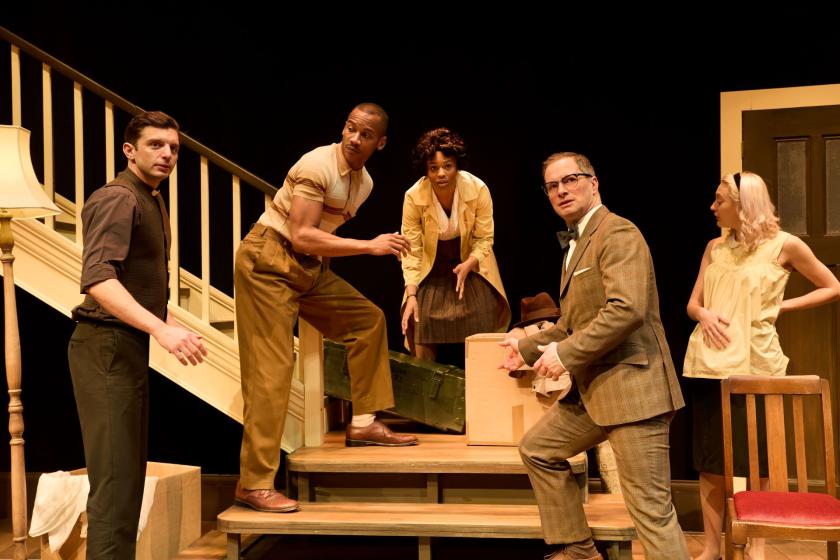 The piece is structured like a Rohrschach blot: two acts set a half-century apart that both mirror and reverse each other. What joins them is a one-storey house in a central district of Chicago. Pictures of US Presidents are projected onto the set’s back wall, the first sequence ending with Eisenhower. We are in 1959, in a district about to experience “white flight”.