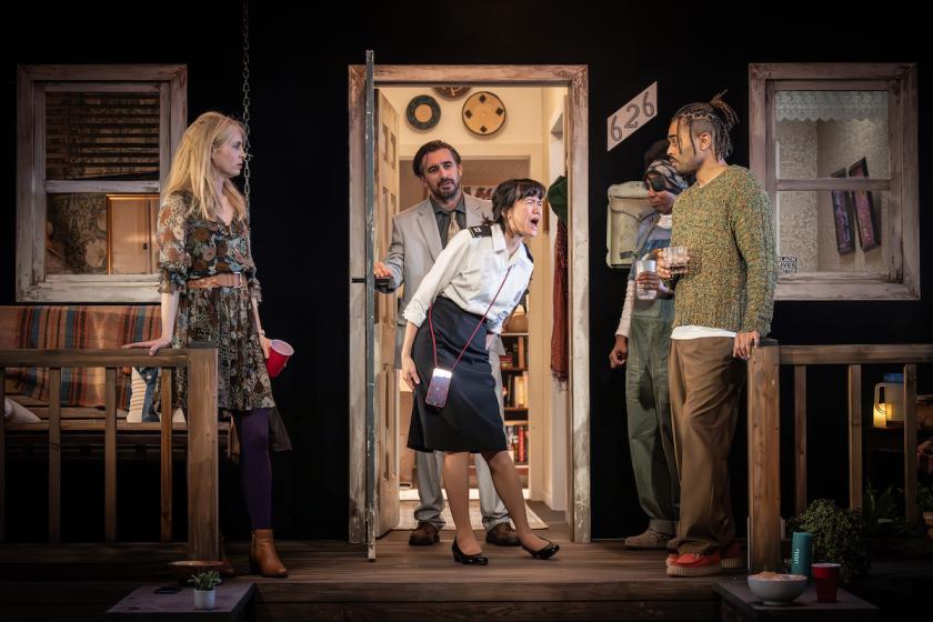 Set in Autumn 2022, the drama focuses on a group of Maryland friends who are gathering for pre-reunion drinks before setting out, in a limo no less, to their 20th high-school reunion. On the narrow porch of recently bereaved Ursula’s place, we first meet her and Emilio, now an artist based in Berlin, and Caitlin, unhappily married to a older right-winger, before the late arrival of Kristina, once a soldier and now a anaesthetist with five kids, plus an unexpected guest, her cousin Paco, an ex-marine with PTSD. Right from the start, these characters also give voice to the figure of Death, whose presence suggests that one of these friends will leave us for ever – but which one?