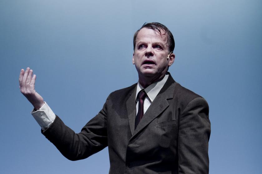 In his brown suit, and on a stylish set beautifully designed by Peder Bjurman, Hendriksson — who also co-directs along with Bjurman — dominates the stage space, clearly enjoying himself as he acts out the collapse of Glas’s febrile mind. Helped by a mic, which allows for a thrilling intimacy, Hendriksson whispers, recounts and occasionally roars out the monologue. Moments of merriment ensure that this is no clichéd account of Scandinavian gloom.When the actor conjures up Pastor Gregorious, he turns into the older man, bent double, coughing and garrulous.