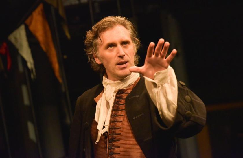 As ever with this genre, the characters' names tell pretty much all. And so we have Hannah Stokely in delicious form as a literary aspirant, Lady Froth, who all but browbeats her husband to go see their (offstage) young daughter. (Her magnum opus goes by the title, Syllabub.) Paul Reid's Lord Froth, in turn, is a grinning narcissist (pictured above) forever lapsing into song and, almost as frequently, French: "Allons," he says, before advising, "that's a bit of French there". The tendency is for grand entrances and almost as grand exits, Jenny Rainsford's swaggering Lady Plyant getting a round of applause as this verbal dominatrix disappears from view. ("I don't doubt that you have very good skin," she remarks to Dharmesh Patel's Careless, Mellefont's chum who is pretty much the only one in this erotic roundelay to show much – skin, that is.)