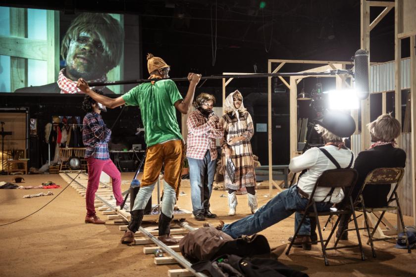 If there’s a more ambitious theatre production than Dark Noon at the Fringe this year, I’ve yet to see it. That’s ambitious in terms of its staging: during the course of the show’s 100 minutes (yes, it’s a proper, full-length production), virtually an entire town is constructed on a bare red-earth stage right before our eyes. But it’s also ambitious in terms of its themes and subject matter. This is the history of the Wild West, the great American push to the Pacific, frontier pioneers, gold rushes and the law of the gun. It’s a world of corruption and exploitation, of racism, abuse, violence and pain, interrogated up close by roving cameras and projected live onto a giant screen at the back of the set. And it’s told by an apparently tireless, fiercely committed company of seven South African actors (six black, one white).