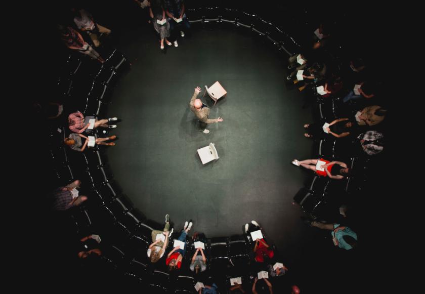 Tim Crouch’s new work, a collaboration with the National Theatre of Scotland, is getting its very first performances at the Edinburgh International Festival before transferring to London’s Royal Court in September. And as ever with Crouch, it’s a slippery, elusive piece of theatre. It’s almost as if its apparent storyline of a doomsday cult feels like an arbitrary framework for Crouch’s reflections on the rituals of theatre, on the role of the audience, on obedience and rebellion.