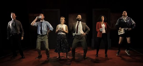 His tour round the school takes in the temporary Portakabin classrooms (fixtures for 20 years) to the escapist sounds of the 90s: The Prodigy, Oasis, Blur, M People, Corona and — whisper it — Celine Dion. The cast of teachers switch in and out as students (there’s not so much difference between them anyway) and manoeuvre two doors on castors and tables and chairs to create spaces that are variously spatial, psychological and emotional. Lighting and sound assist in this as much as characterful choreography and cinematic staging.