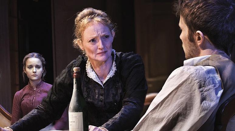 Mrs Alving is accused of being both a bad wife and a bad mother by the self-righteous Pastor, who has visited merely to get a property deed signed, an innocent act that sets dominoes tumbling. As the Pastor says, the community is so small that you don’t question family relationships as long as they’re not spelt out. But once Mrs Alving admits that her pretty maid is the byblow of her dead husband’s raping their previous maid, it is obvious that her son shouldn’t be looking at the girl the way he does.