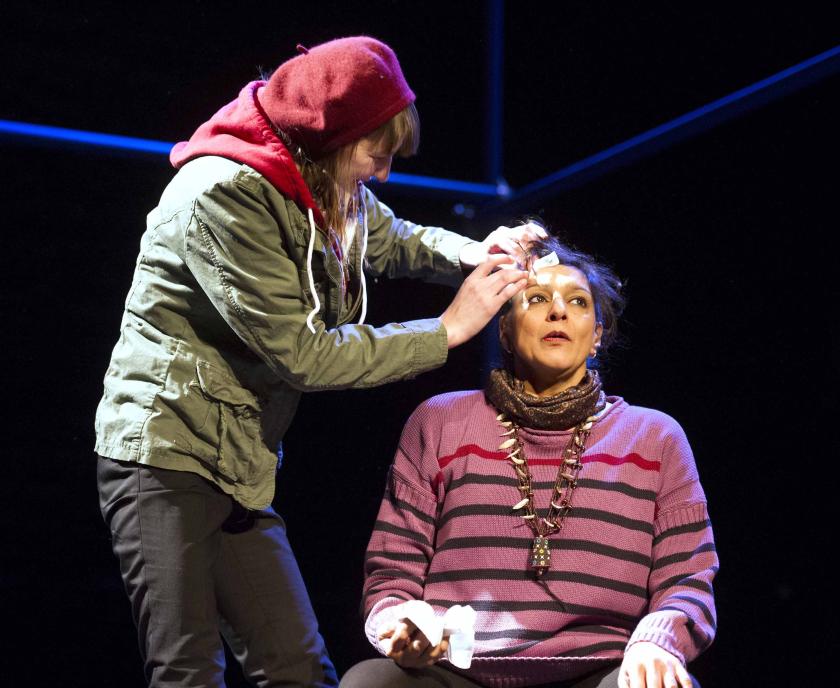 Set in a dystopic version of current times where, to the tune of David Cameron’s plummy praise of the market, all social services have become businesses, the play rapidly spray-paints a picture of acute depression and decay. Prisons are organised on market principles; hospitals function for profit; and the government aims to privatise the air we breathe. In the streets, the sound of breaking glass bends your eardrums while the smell of burning cars hangs in the air.