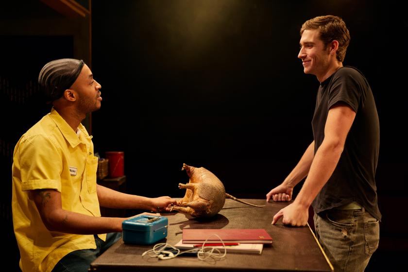 So it’s almost inevitable that Matt (Sam Mitchell) and Shawn (Enyi Okoronkwo) (pictured below) are like the lads with whom I grew up – okay, they’re like me, I’ll admit it. They bond over their NBA team, the Cavaliers, bicker over the minutiae of ranking their sport’s best players and, especially, deal with the near-necessity of moving away to seek one’s fortune. But they always come back to the absurdity that is wrapped up in fandom, identity and history.