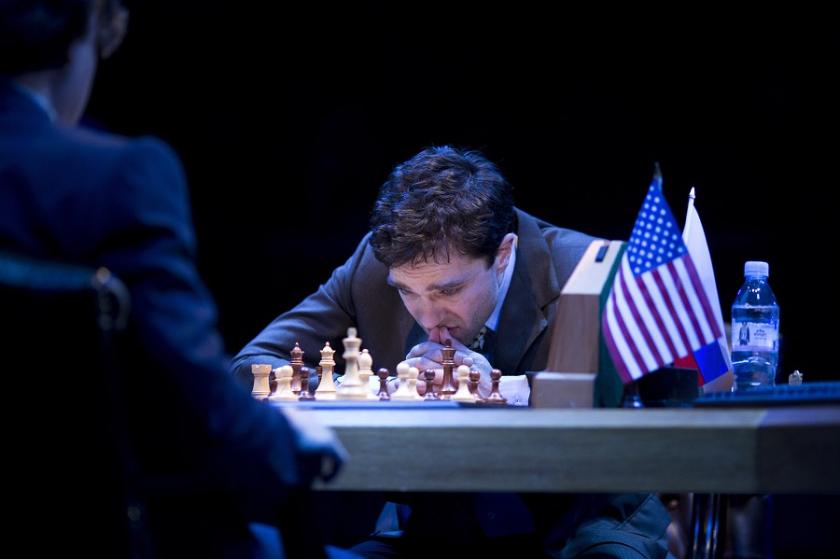 Director Josie Rourke does everything – and more – to liven it up. People rush about, chess tables and computers get whisked around at great speed on neon-lit tracks, lighting and sound effects are used to the full, and we even get exaggeratedly balletic board moves by the contestants set to ballet music. So there is a lot going on. And Lucy Osborne’s high-tech design, with screens and large overhead digital displays and the rest, is very effective.