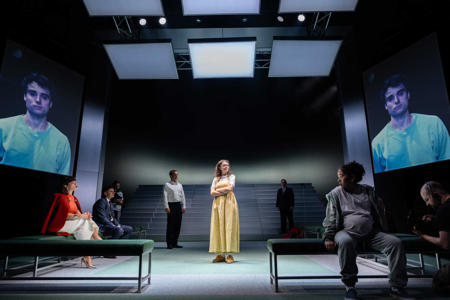 Though there’s a little too much video late on and – not again please! – on-stage microphones to the fore, Frankie Bradshaw’s set and costumes suggest a contemporary corporate state, underlining the kind of projection of power through minimalism that the boys who grew up admiring Steve Jobs’ aesthetic now foist on the rest of us. Not for the first time at a theatre recently, I half-expected Severance’s Mr Milchick to appear making a passive aggressive offer of a waffles for all.