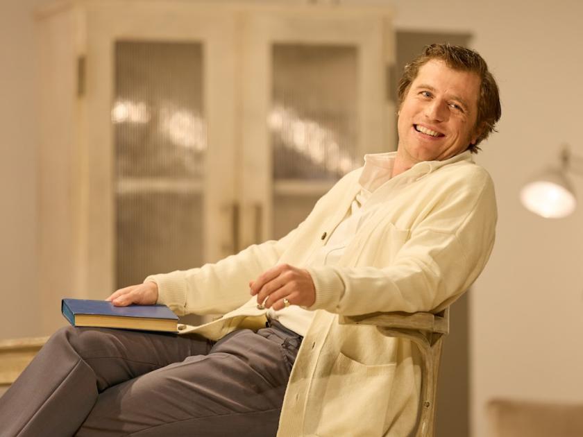 That is something the play addresses, whether great art can be produced out of chaos. Wearing a series of iconic roll neck jumpers, Johnny Flynn makes an explosive Burton, and brilliantly captures his aggressive unease and mellifluous Welsh tones, which stand out against the American accents of the cast. He comes to Gielgud determined to learn all the craft that the great actor can teach him, but at the same time convinced that he, Burton, is the future, and that his Hamlet will excite audiences with the spontaneity and danger that Gielgud’s lacked. Gielgud’s attempts to give him line readings are met with cold fury, and when Burton arrives drunk at rehearsal, he proceeds to humiliate his director.