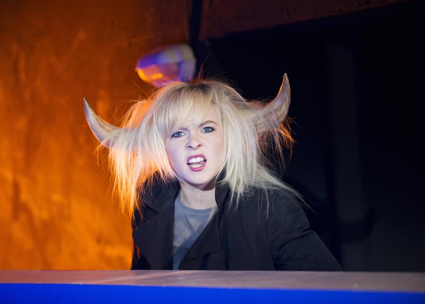 Narrative uses lots of storytelling devices: we see rehearsals for an advert for a computer Foot Mouse, songs, snatches of arguments between friends or lovers, a poem, a questionnaire, odd conversations, direct address to the audience and small mini-scenes. There is a joke about YouTube and another about Skype; there are metaphoric tales and gradually the cast don bison horns.
