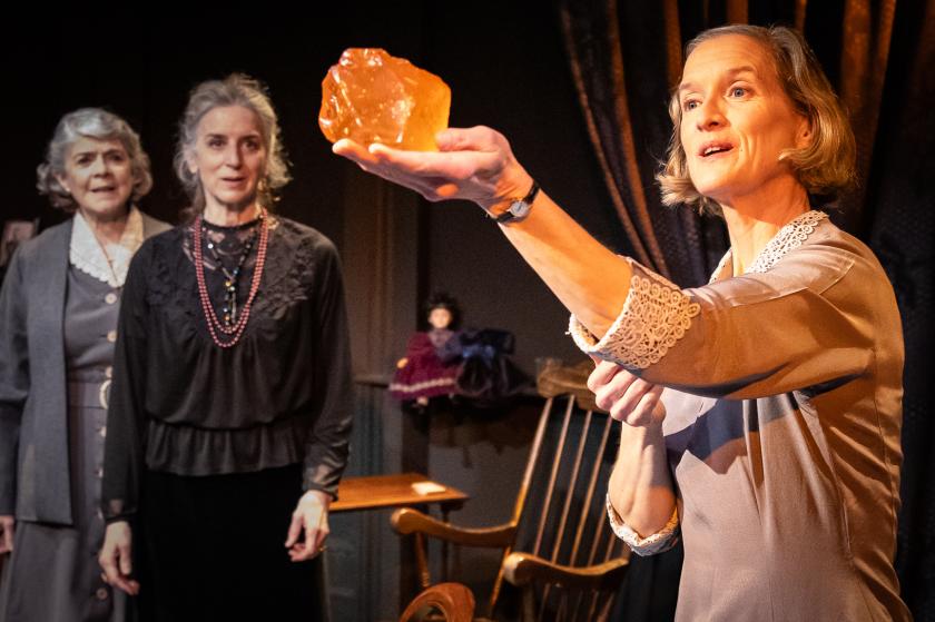Over 90 minutes we watch as the natural little fissures in the women’s relationships turn into wide cracks through which antagonistic outbursts explode. Lucy seems the most sensible, a widow with an errant son she expects to arrive imminently; she attends church and has kindly Christian urges. May is of great concern to her, a wizened new lodger from St Leonard’s, who’s of a nervous disposition and can talk of little except her late dog Pip and her best friend Jane, who gave Pip to her, along with a lump of amber that has become May’s prize possession.