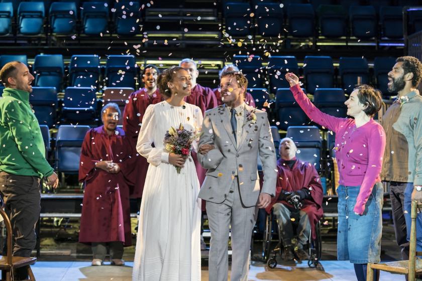 For the first two acts Ellen McDougall’s production presents the characters – in modern casual-wear – on the treadmills of their daily routines: people get up, have breakfast, go to school or work, gossip, and fret gently about the future. This is a tale with no sound or fury in a place where culture begins with Robinson Crusoe and ends with Whistler’s Mother, but it picks up pace as the precocious Emily reveals she is in love with her high-school friend, George.