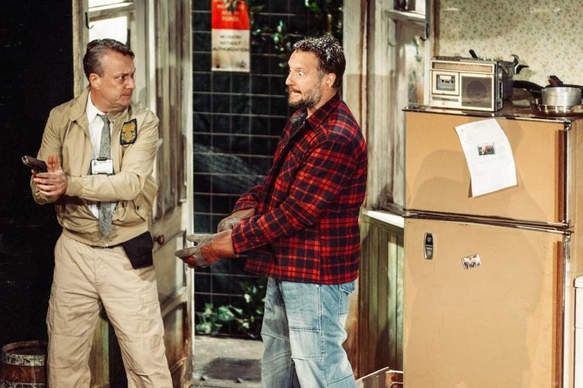 We're in present-day America, at Tom and Tina's filthy kitchen (great design by Carla Goodman), on the farm where they raise 15,000 pigs. Tim (Erik Odom), their nice but dim farmhand, is tasked with counting the critters under a threatening sky - “it'll turn the farm into mud” - while along comes the very precise Teddy (Stephen Tompkinson) from the Environmental Protection Agency to check everything is in order. The more alert among you will have noticed that all the characters, including those offstage, have names beginning with “T”, which leads to some totally tiresome alliteration. See, I can do it too.