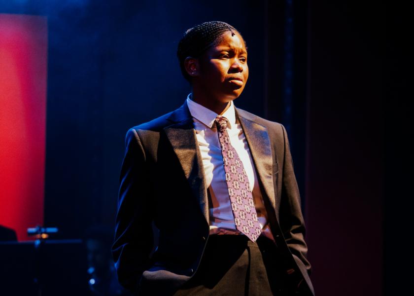And away we go, the opener suggesting Twelfth Night on 42nd Street as a kid full of moxie and talent pitches up at The Cotton Club in the 1940s, only to be told that women can’t write music. So she does a George Eliot - in this case a Viola/Cesario - and suddenly she’s an androgynous Grace Jones figure in a dark suit, passing as a man. Bandleader, The Duke, with no heart for his songs to be in any more, likes the lad’s tunes and employs this self-named Vyman to win back the love of the very divaish diva, Lady Liv, who soon takes a shine to this sharp-dressed mystery man. Meanwhile, Rev is winding up the club staff with his pompous self-regard and hard-driving management style, but they’re plotting to turn the tables on him.
