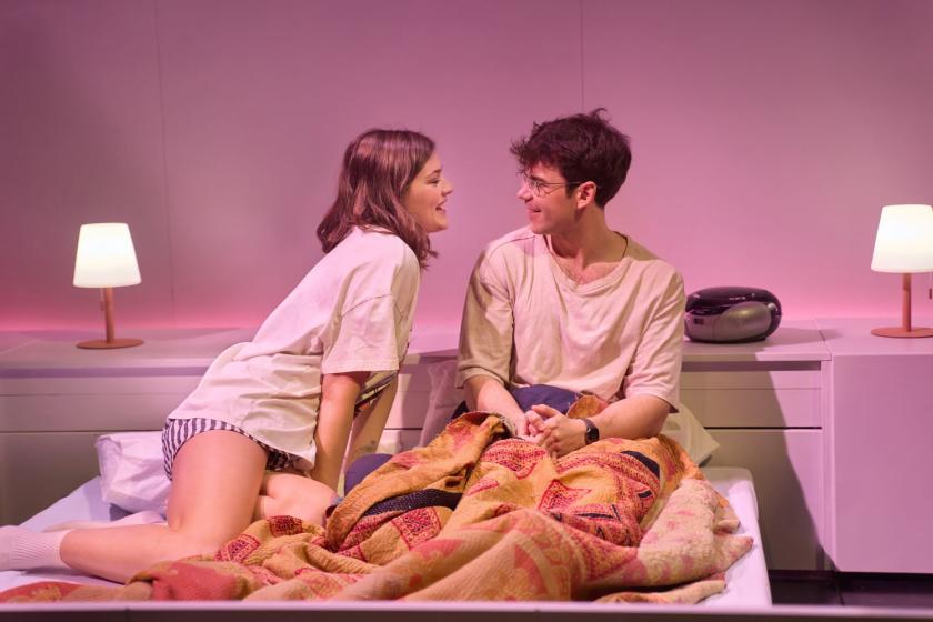 Luke Newton (L) and Carla Harrison-Hodge in 'The Shape of Things' at the Park TheatreBut overall, the script is lumpy. The punchlines seem to be in the wrong places: “I smell trouble,” says Adam, waiting for a consultation for his nose job, “which I may not be able to do after this.” The joke would be so much stronger with a little nudge of the syntax. You wish LaBute had done more of an update on the play’s gender politics, too. Sex appears in the form of blowjobs or handjobs or penetration; there’s never any mention of female pleasure. Jenny walks out after a row with Evelyn, and then sidles onstage again a few lines later. “I don’t know why I’m back,” she declares. Me neither, Jenny.