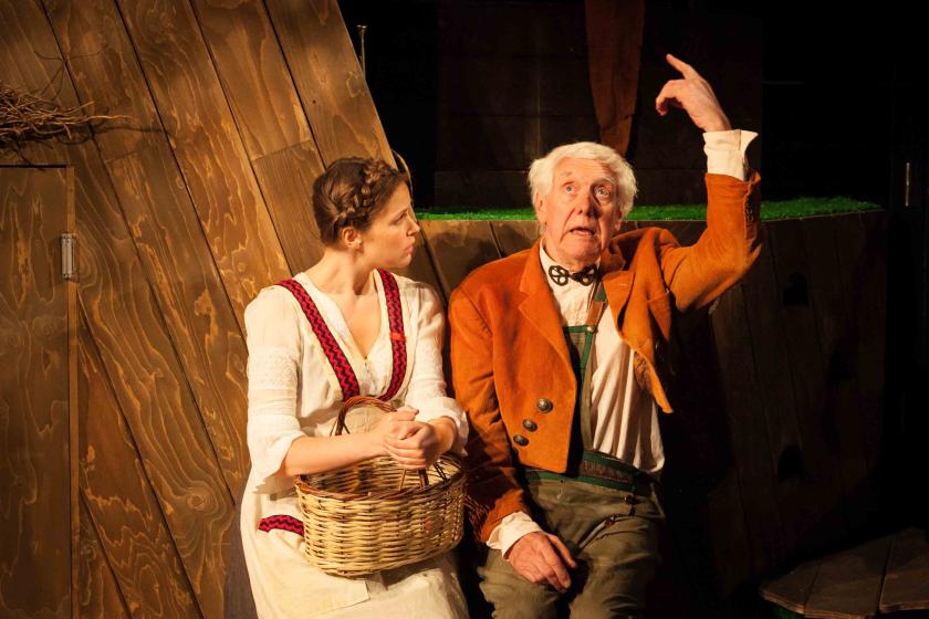The tiny theatre is transformed into the exuberant Nordic cousin of Tolkein’s The Shire, all low wooden doorways in alarming pastel shades and bucolic rhapsody. In a nice touch, the goblins (whose mischievous spiking of the punch-bowl sets confusion in motion) lurk at the back of the stage, adding constant commentary in Luke Bateman’s attractively naïve musical accompaniment. Some dodgy poetry (and still dodgier West Country accents) completes their role as folk-styled agents provocateurs.