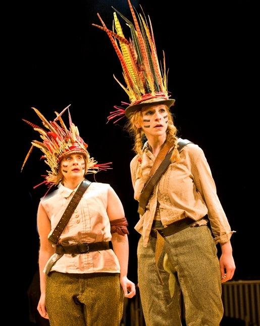 This is very much an ensemble piece: the less central roles are taken by actors who also play musical instruments, produce a variety of sound effects and handle the minimal props which evoke the sailing boats, scenery, a variety of wild fowl (including a menacing cormorant) and other elements of the imaginative whole which goes through an endless series of eye-catching mutations. Hannon's songs work well as vehicles for the lead actors, not least to underscore the show of strength from the Blackett sisters – decked out in costumes that evoke the Girl Guides as much as tribespeople from the Amazon basin - but also expressing the richness and complexity of individual characters: John Walker has a poetic side reflected in a song about the darkness falling over the lake, and Titty’s solo spot reveals something deeper than the ebullience which mostly defines her.
