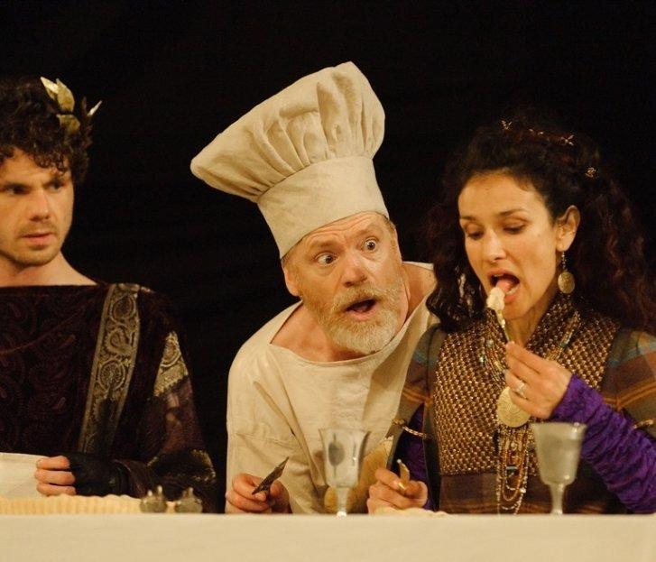 Originally staged in 2006, Bailey’s production is revived with as much energy and intelligence as ever. Much of its success comes from crowd-control, dominating the Globe’s space and forcing us all into violent complicity. We are the mob that drag the jovial Bacchus to his death, the crowd who approve Saturninus as emperor, the horrified spectators at Titus’s twisted feast.