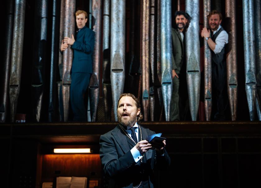 Matching the outlandish visuals is a perfectly pitched score by Matt Maltese, played mostly on piano or pipe organ, that juggles vaudeville jollity with smooth ballads and dramatic organ chords. Feste still ends the piece with a tender version of “The Wind and the Rain”, to the usual lyrics, but the song could have been written for Thom Yorke.