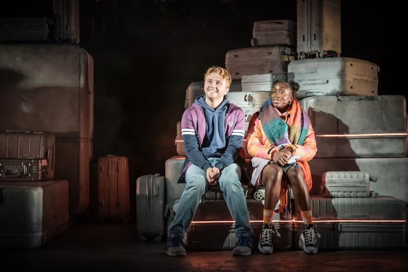 Soutra Gilmour’s set is a triumph as the duo plunge from one experience to the next. A single case spins round on the carousel, while piles of bigger cases, looking like skyscrapers, dominate the stage, various lids opening up to create a Chinatown restaurant, the coffee shop where Robin works, or a suite at the Plaza.