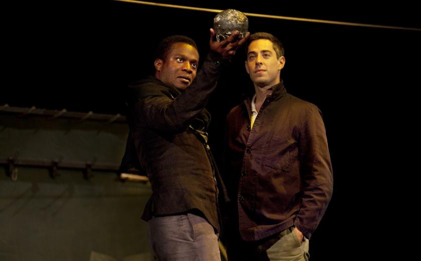 Coming back down to earth after the end of this elephantine tour, one of the biggest challenges remains: how to explain it to people. How to describe the last two years of our lives, recount the uncountable experiences gleaned from every pocket of the world? It has been unfathomably rich with memories, Sistine Ceiling-ed in its fullness. The question we are asked more often than any other, than all the others put together, is, "What was your favourite country?" Every time, unfailingly. It is the God-Adam fingertips of understanding the whole, a single image to represent a masterpiece. It is a way in, and, in most cases, it is enough. (Pictured below: Tom Lawrence as Laertes and Matthew Romain as Hamlet in the Odeon Amphitheatre, Amman, Jordan. Photograph by Bronwen Sharp)