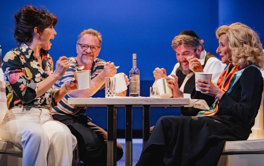 In one corner are Shoshana (Dorothea Myer-Bennett) and Yerucham (Simon Yadoo) from Jerusalem, who are visiting old friends in Florida. In their youth they were Laurel and Mark, but now Mark sports a prayer scarf, a big beard and a fedora, Laurel is in black with flat shoes and a wig. Not any wig but a sumptuous blonde number redolent of a 1940s movie star like Carole Lombard or Jean Harlow.