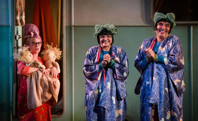 “What a joy it is to dance and sing!” These words echo through Carter’s novel and are repeated more than once in Rice’s version, which is a love letter to both theatre and radically alternative views of family life. On stage the entertainment is a joyous celebration of the magic of theatre, with its show tunes, chorus girls, costumes, puppets and pantomime comedy. The older Dora, who celebrates her 75th birthday at the start of the piece, is the narrator and her birthday, significantly, is 23 April: Shakespeare’s putative birthday. Snatches of the bard’s words, plus a whole host of other thespian references – from Martha Graham to Richard Brinsley Sheridan – punctuate the proceedings, which have a comic brio as the vivid characters gallop through dozens of incidents with the speed and skill of a circus horse rider.