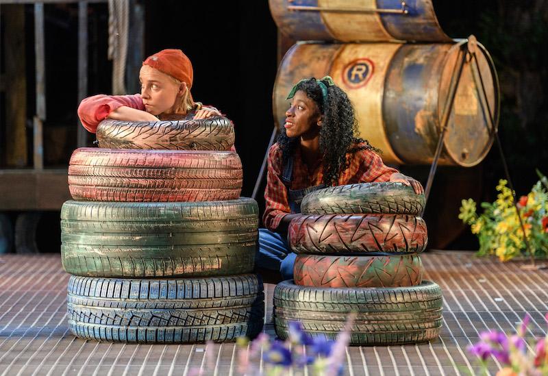 In the forest, meanwhile, kindness reigns. The exiled Duke Senior and his company are not so much refugees from civilisation as a happy hippy colony choosing to live a better life in tune with nature, an idealistic, mixed, bucolic society rather than a male forest court. Snowfall does not cool their pleasure in their surroundings and each other and, before long, flowers are blooming and those horribly symbolic plastic bottles are strung up as loops of festive lanterns. Shakespeare always has something to say on any subject if you choose to find it, and here the notion of Permaculture, described in the programme as a design system based on patterns found in the natural world, is the inspiration for director Max Webster and designer Naomi Dawson.